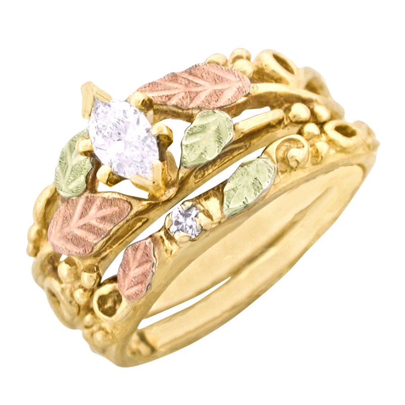10K Black Hills Gold Ladies Ring with Diamonds